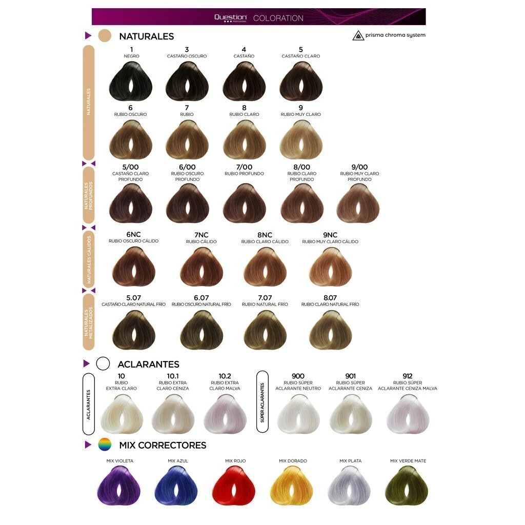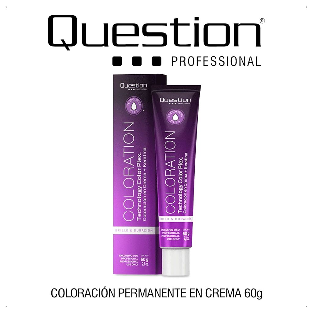Las tinturas Question en pomo de 60 g están formuladas con pigmentos de alta calidad para lograr tonos vibrantes, duraderos y uniformes desde la primera pasada. Su fórmula enriquecida cuida la fibra capilar mientras aporta cobertura total de canas y un acabado profesional.